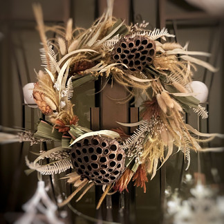 2. Foliage and dried flowers: Eucalyptus, ferns, etc are good options to create a natural and bohemian look. Whereas earthy tones flowers such as sunflowers, daisies, or wildflowers are great options to add a pop of color to your wreath.